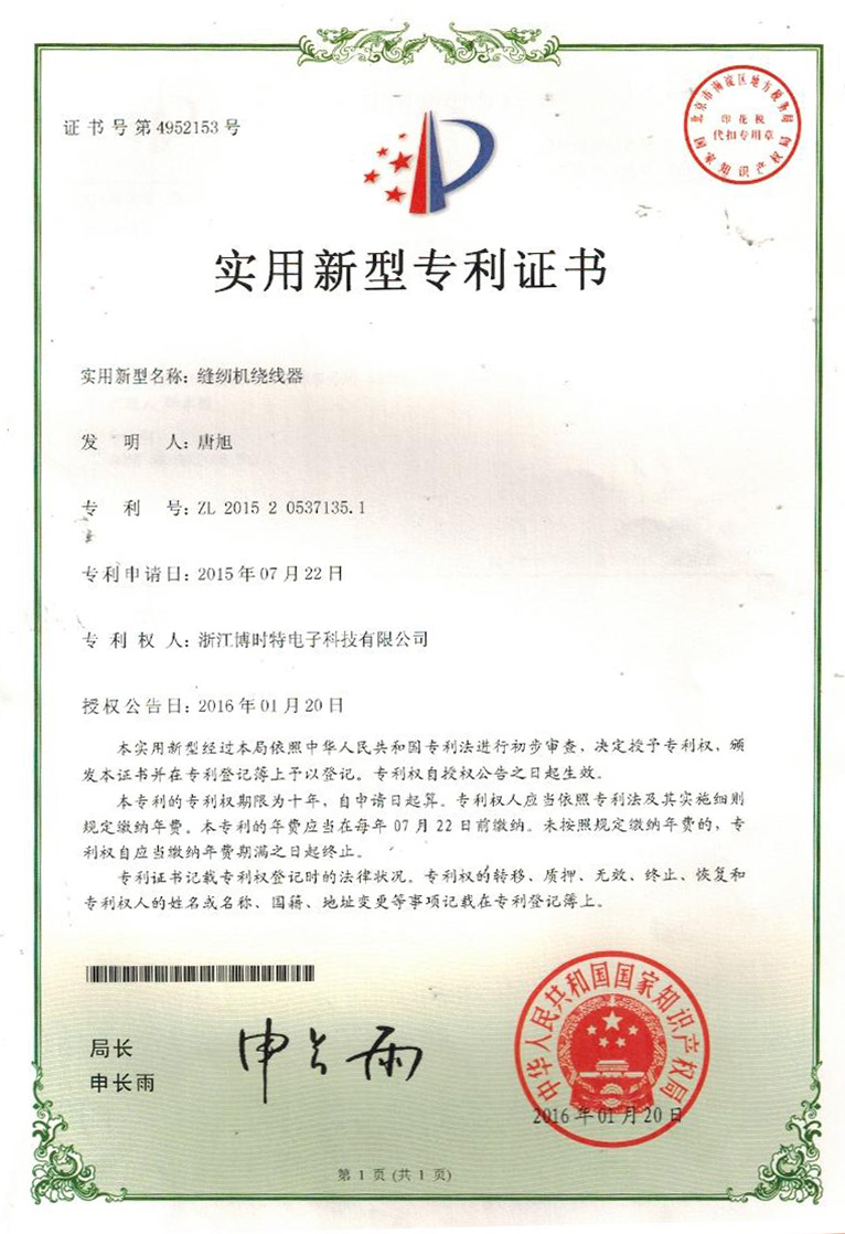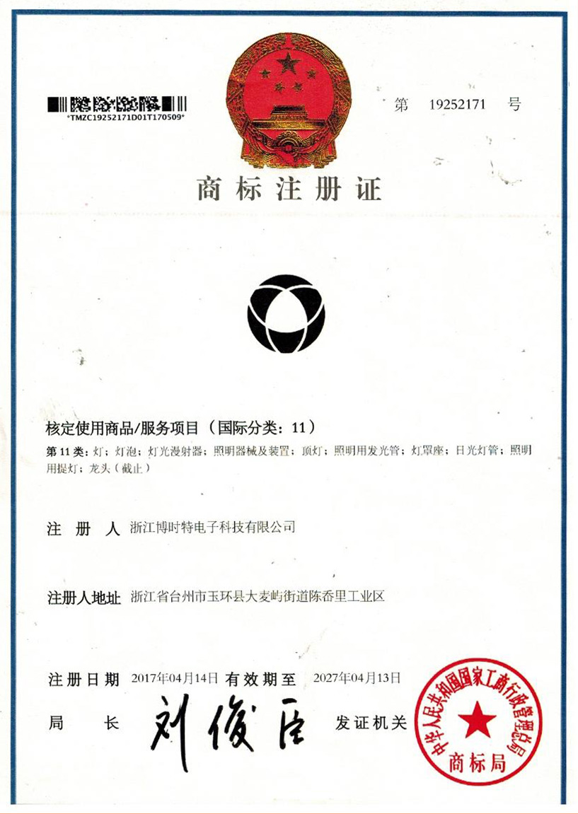 “博時(shí)特” 商標(biāo)注冊(cè)證