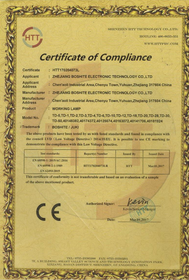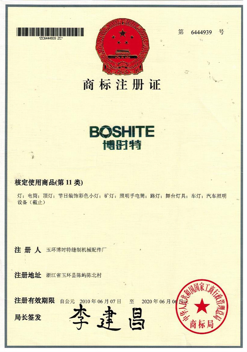 “BOSHITE” 商標(biāo)注冊(cè)證