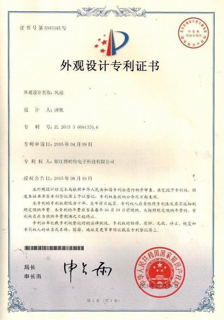 外觀設(shè)計(jì)專利證書(shū)