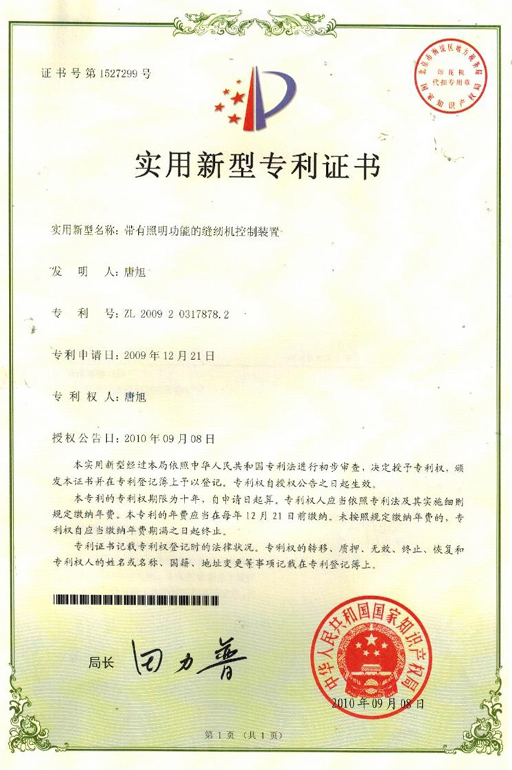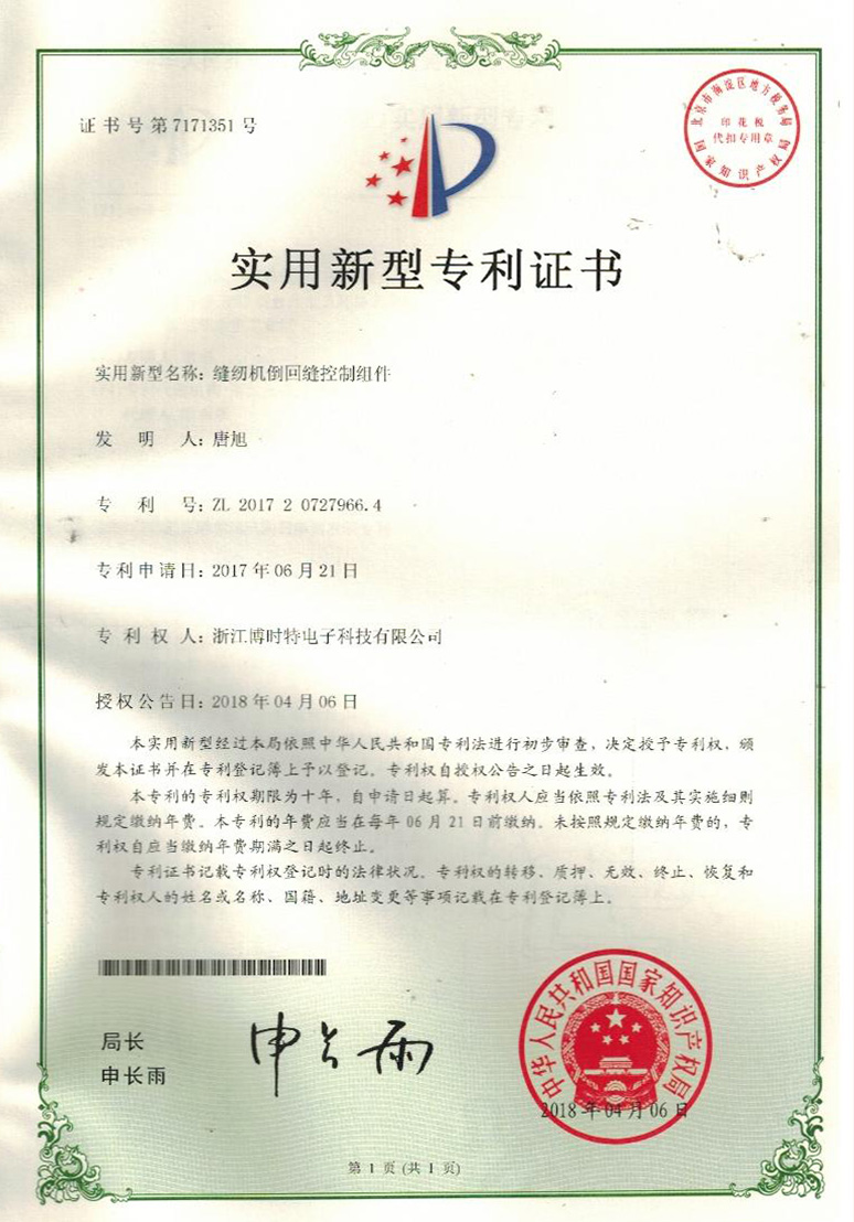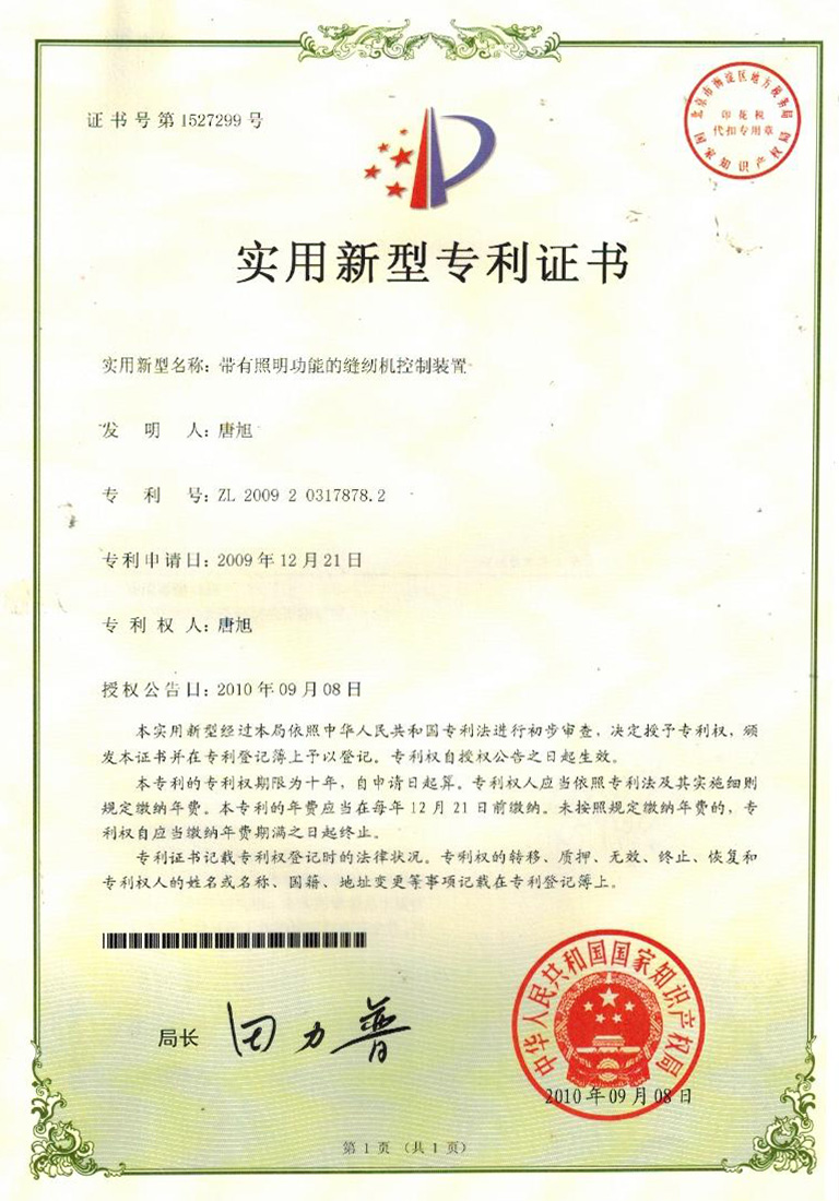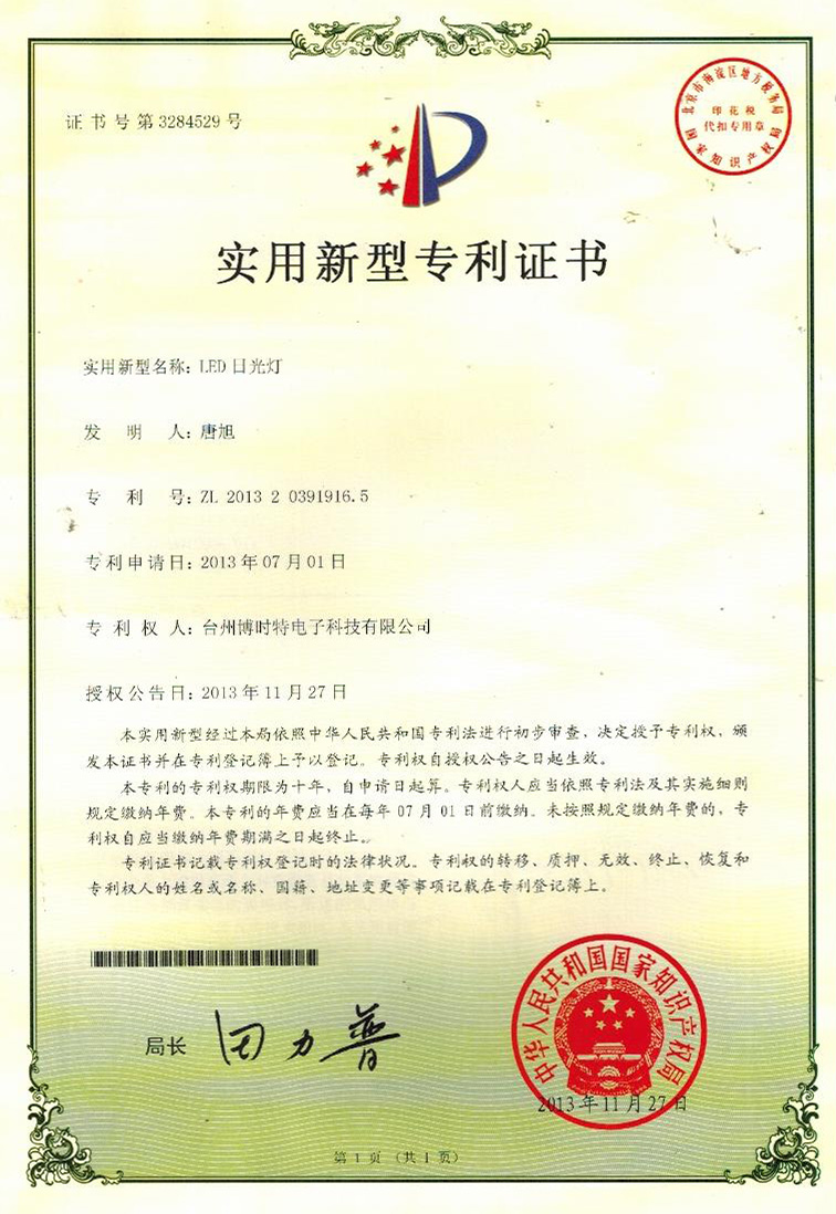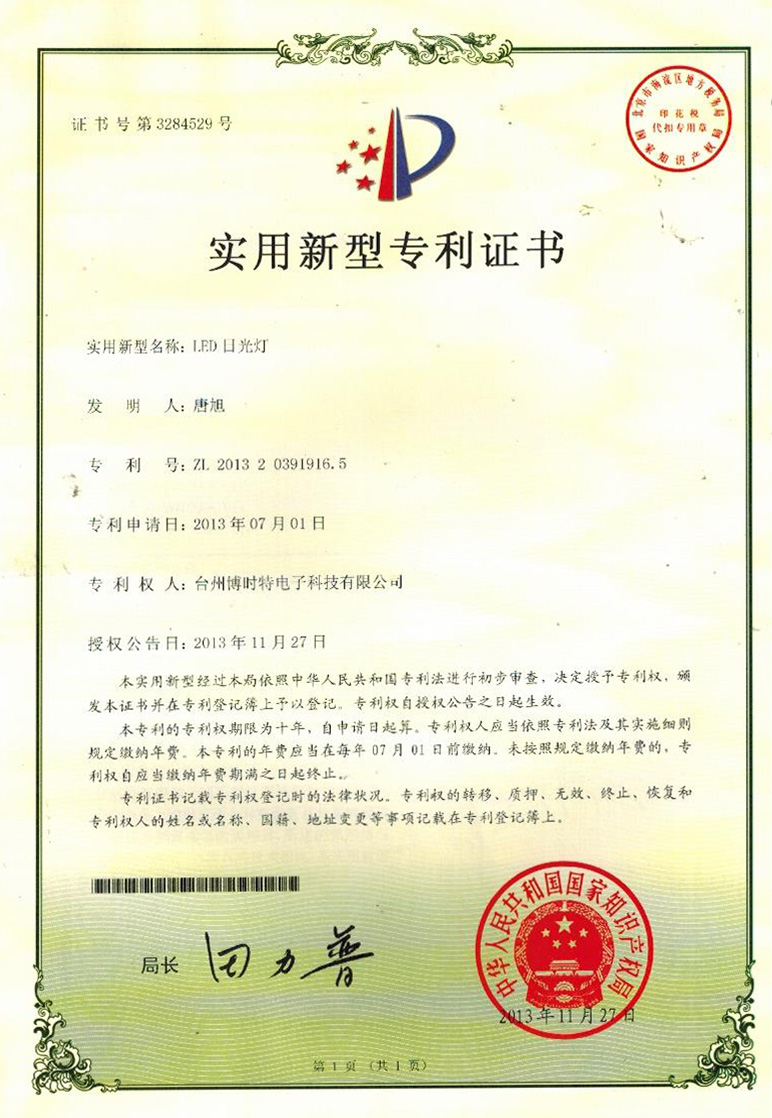 實(shí)用新型專利證書(shū)