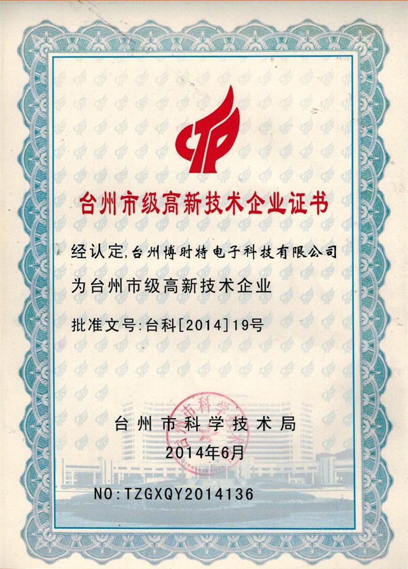 臺(tái)州市高新技術(shù)企業(yè)證書(shū)